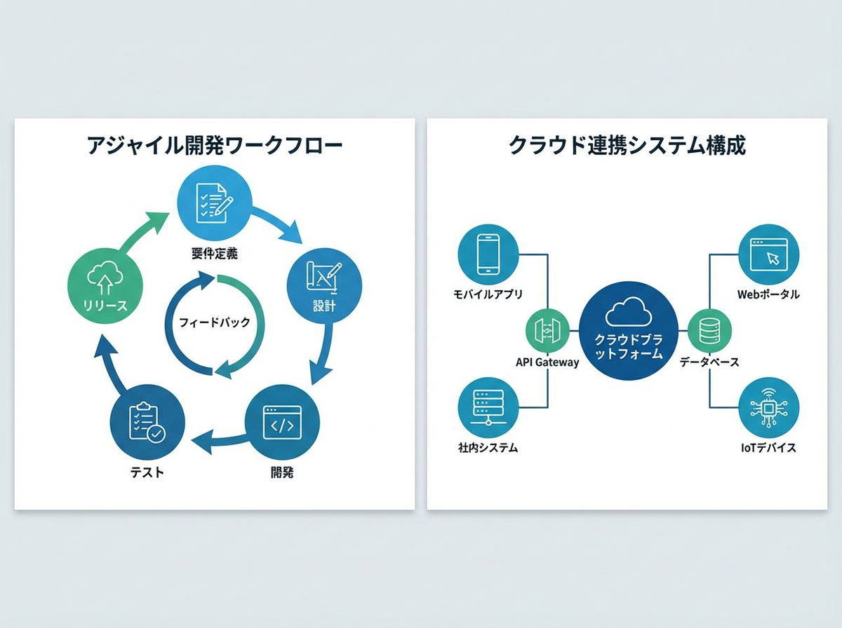 アーキテクチャや効果測定を視覚化し、資料全体のトーンを統一。箇条書きも正確レンダリング、印刷品質で書き出し。